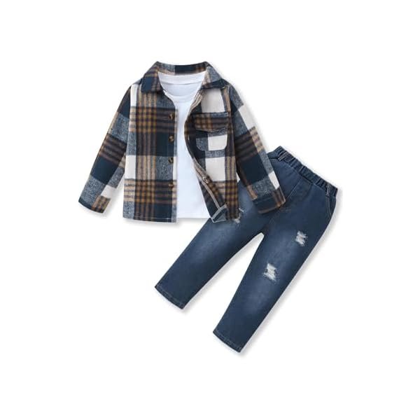 - Design: Flannel is especially good for spring and autumn, or for slightly cooler weather. The classic blue-gray plaid pattern is durable with the white long-sleeved T-shirt inside to make the overall look more refreshing and bright. With blue jeans stain resistant suitable for baby’s daily activities wear