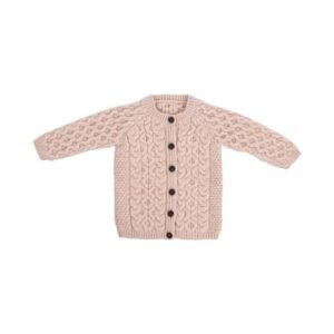 Aran Cardigan for Kids: 100% Merino Wool, Crew Neck, and Button Front – Made in Ireland