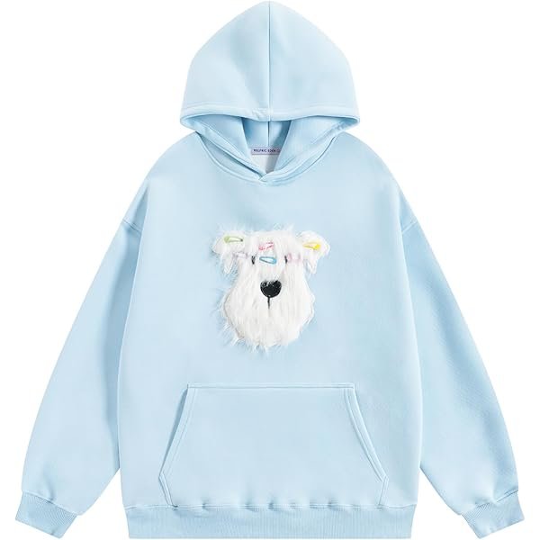 - 【Unique Graphic Hoodie】This Aelfric Eden Y2K graphic hoodie features a playful 3D plush dog with decorative hair clip, adding a fun and stylish touch to your streetwear wardrobe, stand out at parties or casual fashion daily wear